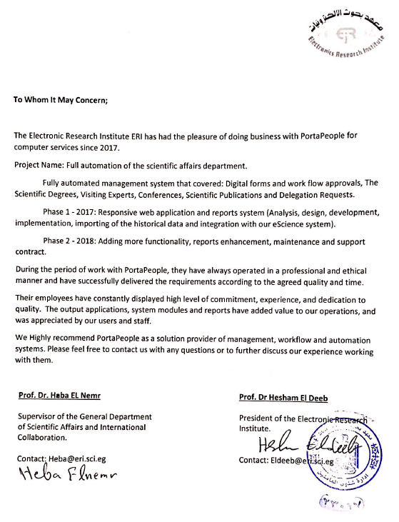 قام فريق بورتابيبول بتطبيق أنظمة أودوو و التدريب عليها في العديد من الشركات و المؤسسات في مختلف المجالات مثل